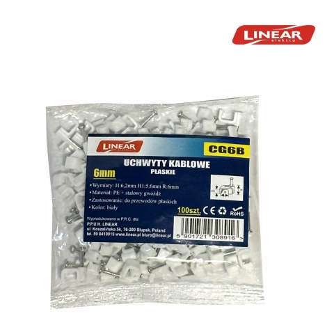 Uchwyt kabl.płaski gwóżdz CG6B 6mm biały op.100szt