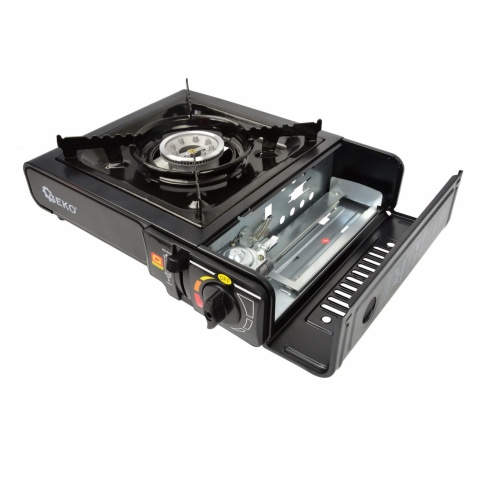 Kuchenka zasilana kartuszami powszechnie stosowanymi w tego rodzaju urządzeniach. Wyposażona została w zapalnik piezoelektryczny, dzięki temu do uruchomienia kuchenki nie są potrzebne zapałki bądź zapalniczka. Palnik posiada dodatkowe wypustki zapewniające równomierne podgrzewanie powierzchni. Kuchenka posiada nadstawkę przeznaczoną do grillowania co sprawia że jest to idealne rozwiązanie podczas wypadów plenerowych, biwaków itp.