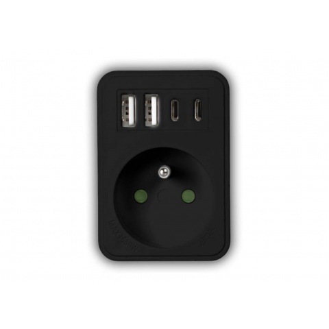 Rozgałęźnik sieciowy: 1 gniazdo okrągłe z uz. + 2x USB + 2x USB-C, 3,1A Czarny