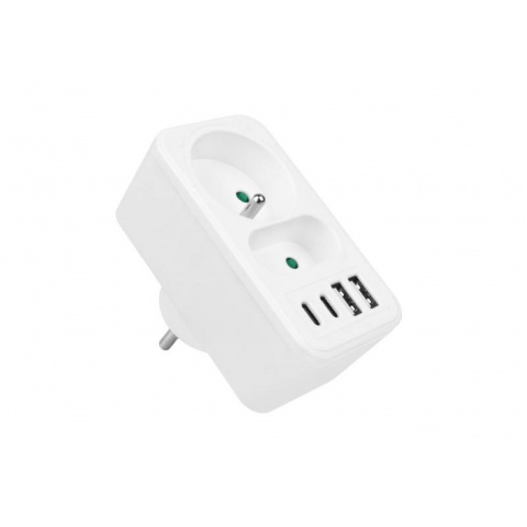 Rozgałęźnik sieciowy: 1 gniazdo okrągłe z uz.+ 1 gniazdo płaskie + 2x USB + 2x USB-C, 3,1A, biały