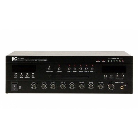 TI-120CT posiada zdolność adresowania przekazu do 5 stref nagłośnienia. Centrala posiada wbudowane: odtwarzacz CD (czyta pliki MP3 z płyty) oraz tuner AM/FM. Wejście MIC 1 posiada priorytet ponad pozostałymi wejściami. Wejście EMC posiada priorytet ponad pozostałymi wejściami za wyjątkiem MIC 1.